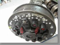 Le volant moteur, puis le mécanisme d'embrayage , sont montés. On n'oublie pas de respecter la position repérée lors de l'équilibrage.