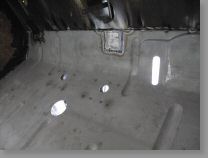 Le plancher arrière, les passages de roues et le tablier sont décapés jusqu'à mise à nu du métal.