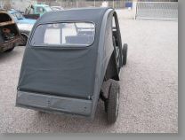 Nous remontons une capote neuve, vert sapin, modèle long à grande lunette, comme à l'origine. Les garnitures de sièges en tissu écossais vert et gris prennent place également. A priori un anachronisme sur ce modèle car théoriquement plus montées depuis 1956, on en trouve cependant sur plusieurs véhicules du millésime 58...sans doute un stock retrouvé et écoulé à ce moment là !