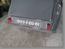 Les feux arrières Seima, mis en place dans un premier temps, sont anachroniques par rapport à la date de production du véhicule. Nous les remplaçons donc par le bon modèle, des feux AXO, plus sombres et au catadioptre en verre. Seule la semelle des feux précédents est conservée, elle est en effet parfaitement assortie à la couleur du joint de goulotte d'essence, et de la même couleur que les jantes.