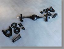 Le train avant est le prochain sur la liste... Les deux demi trains sont repérés et rangés, de même que la crémaillère. Un jeu important dans les pivots est noté au démontage, mais globalement l'état des différents silentblocs et de la suspension semble bon.
