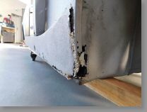 Paradoxalement, la baie moteur et les planchers intérieurs sont plutôt en bon état, seules deux perforations apparaissent au niveau des montants de portes.