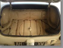 La sellerie est elle aussi démontée. Son état importe peu pour être honnête, puisque c'est une intérieur très simple, dont on trouve de plus encore tous les éléments en refabrication de bonne qualité, dont la capote.