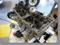Le moteur est extrêmement encrassé, une croûte d'huile noire recouvre l'ensemble des pièces, mais il semble assez peu usé. Après des mesures précises, l'embiellage se révèlera en effet être en bon état, tout comme les pistons et cylindres, l'arbre à cames, et la rampe de culbuteurs.
