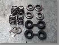 Passons aux choses sérieuses avec la dépose des culasses. Les jeux aux soupapes, mesurés avant démontage, sont corrects, ce qui est bon signe au sujet de l'entretien, et de l'état des sièges de soupapes. Les chambres de combustion sont très calaminées, mais les têtes de soupapes sont en bon état apparent. Des mesures précises, après démontage des soupapes, montrent que les guides et queues sont en excellent état. Il n'y a aucun jeu, leur remplacement n'est donc pas utile et nous ne craignons pas de consommation d'huile par les guides. Les sièges seront quant à eux rectifiés, ainsi que les portées des soupapes.