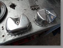 Visserie, joints, et autres petites pièces, sont nettoyées et préparées. Pour un beau résultat esthétique, les cache culbuteurs sont avivés après nettoyage.