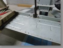Les planchers latéraux et le plancher pédale sont alors montés à blanc et pointés sommairement. A ce niveau, nous reposons la caisse sur la chassis pour contrôler la concordance des cotes et le positionnement correct des pièces greffées.