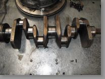 Les coussinets neufs sont placés sur le bloc moteur et, après les avoir enduits d'un lubrifiant d'assemblage, nous remettons en place le vilebrequin. Les chapeaux de paliers sont serrés au couple. |
