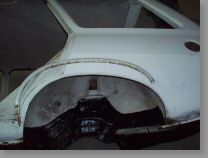 C'est bien moins grave, car cette partie doit quoi qu'il en soit être modifiée afin de permettre un passage plus "confortable" des roues de plus gros diamètre. Toute l'extrémité sera découpée, puis une tôle sera mise en forme et soudée en lieu et place.